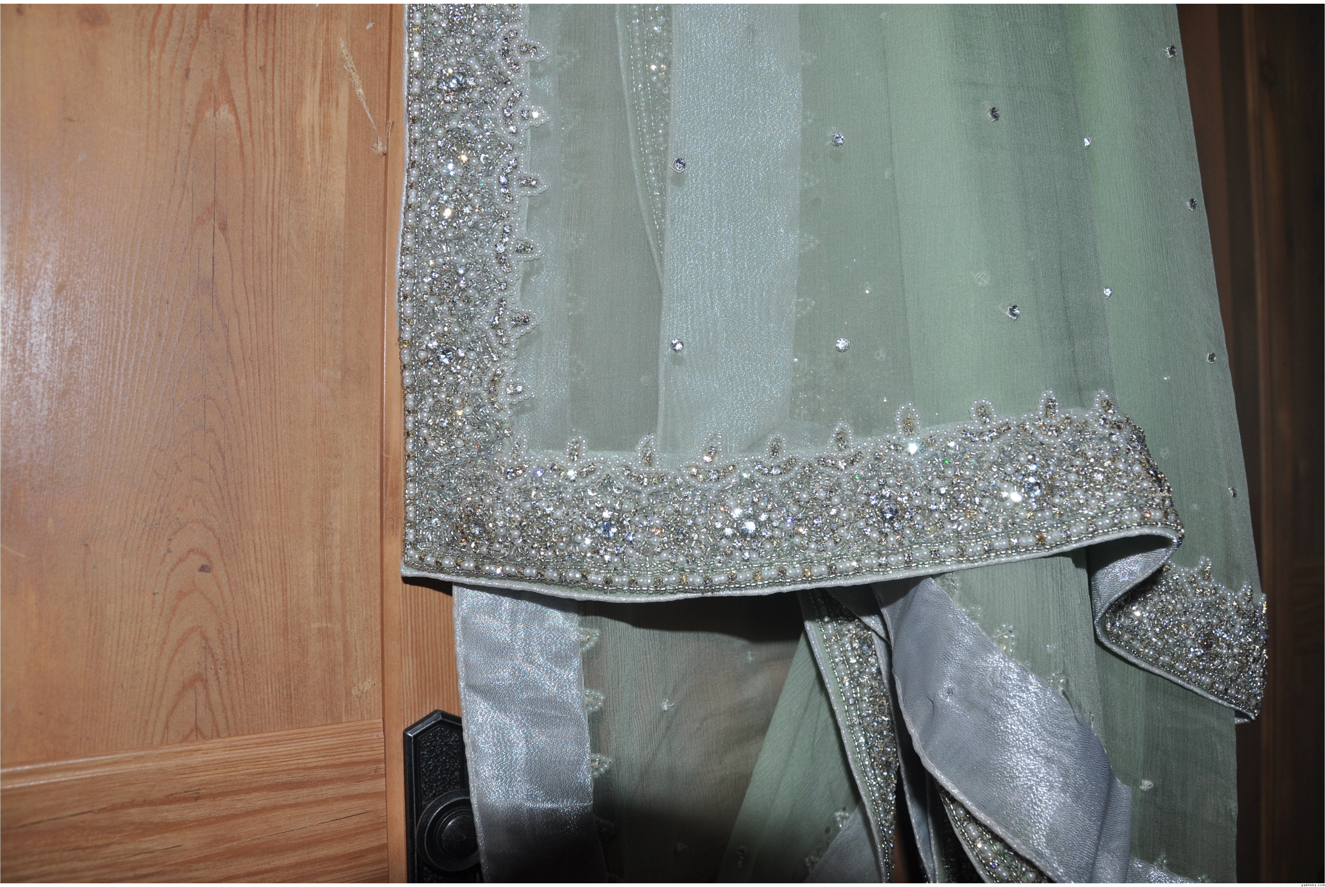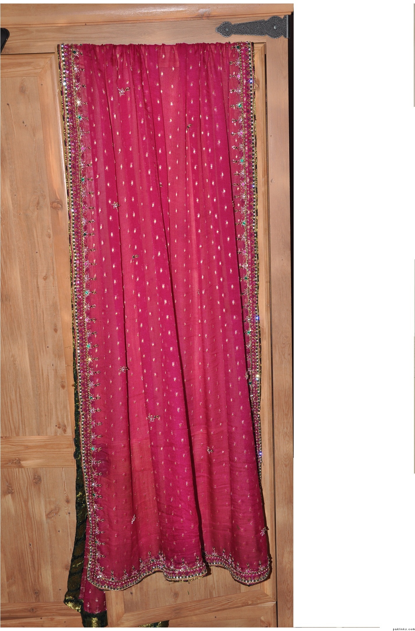 small swarovski crystals are again scattered all over the Dupatta. The Dupatta it self is quite heavy when it comes to the kaam as all 4 sides of the Dupatta has kaam done to it