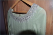 Top: Chiffon with embroidery on neck damaan and arms. Zip at back