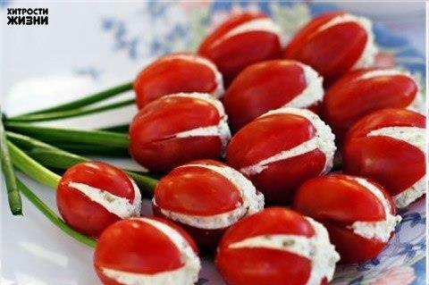 Tulips made with tomatoes, spring onion with cream cheese filling ..how clever