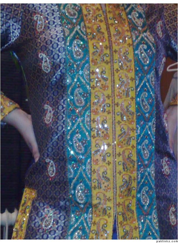 She was supposed to wear this for eid but she couldnt wait so wore it on a dinner party instead. The embroidery is so nicely done looks like print.
