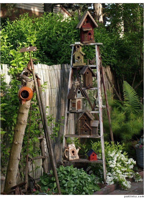 bird houses on ladder