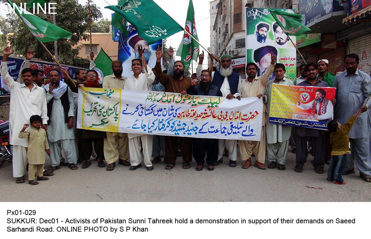 The most recent target of blasphemy allegation is ex-singer and now religous scholar Junaid Jamshed. A fatwa is issued by Sunni Tehrik as below and demonstrations are started. The accusation is for his speech about Hazrat Aisha (RA).