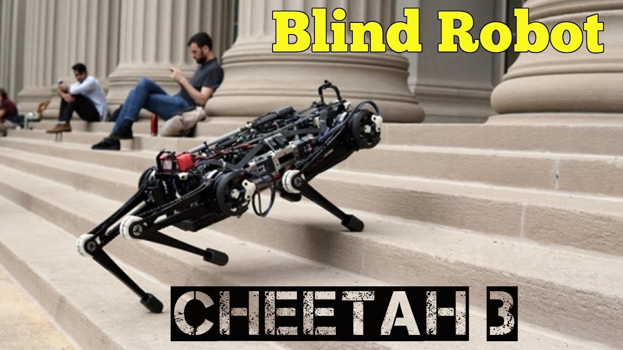 MIT?s Cheetah 3 robot can now leap and gallop across rough terrain, climb a staircase littered with debris, and quickly recover its balance when suddenly yanked or shoved, all while essentially blind. The 90-pound mechanical beast ? about the size of a full-grown Labrador ? is intentionally designed to do all this without relying on cameras or any external environmental sensors. Instead, it nimbly ?feels? its way through its surroundings in a way that engineers describe as ?blind locomotion,? much like making one?s way across a pitch-black room. “There are many unexpected behaviors the robot should be able to handle without relying too much on vision” says the robot?s designer.