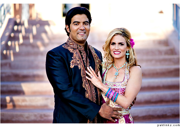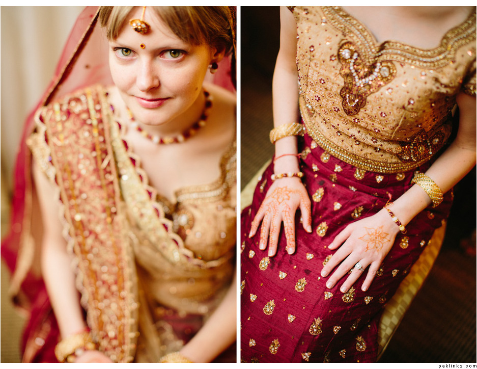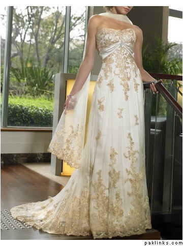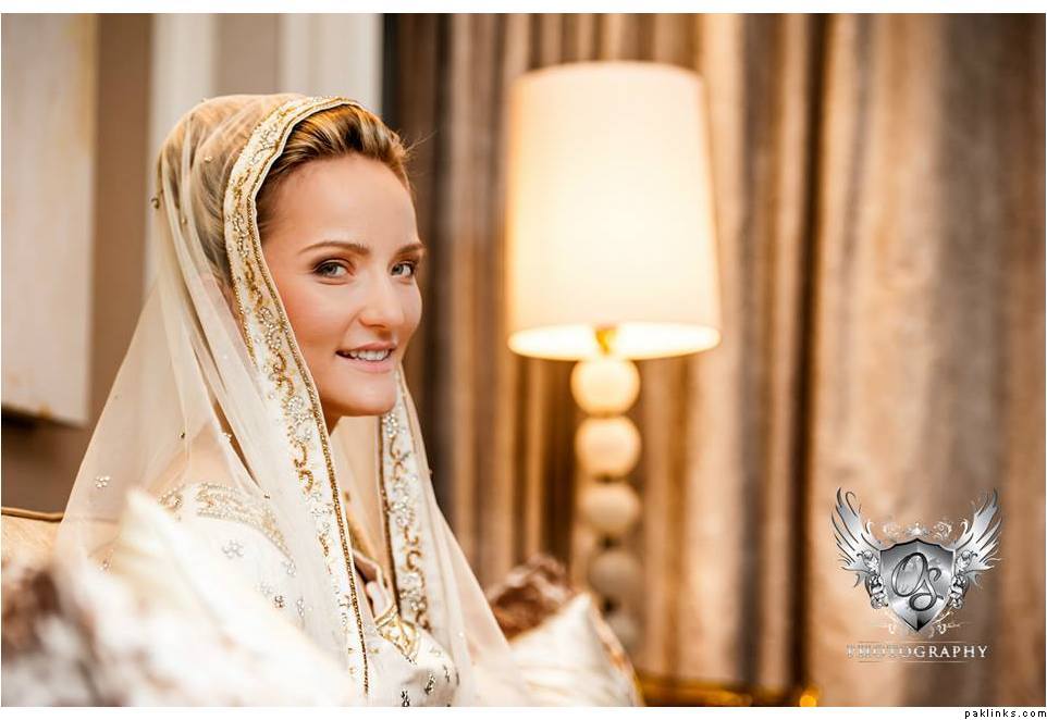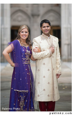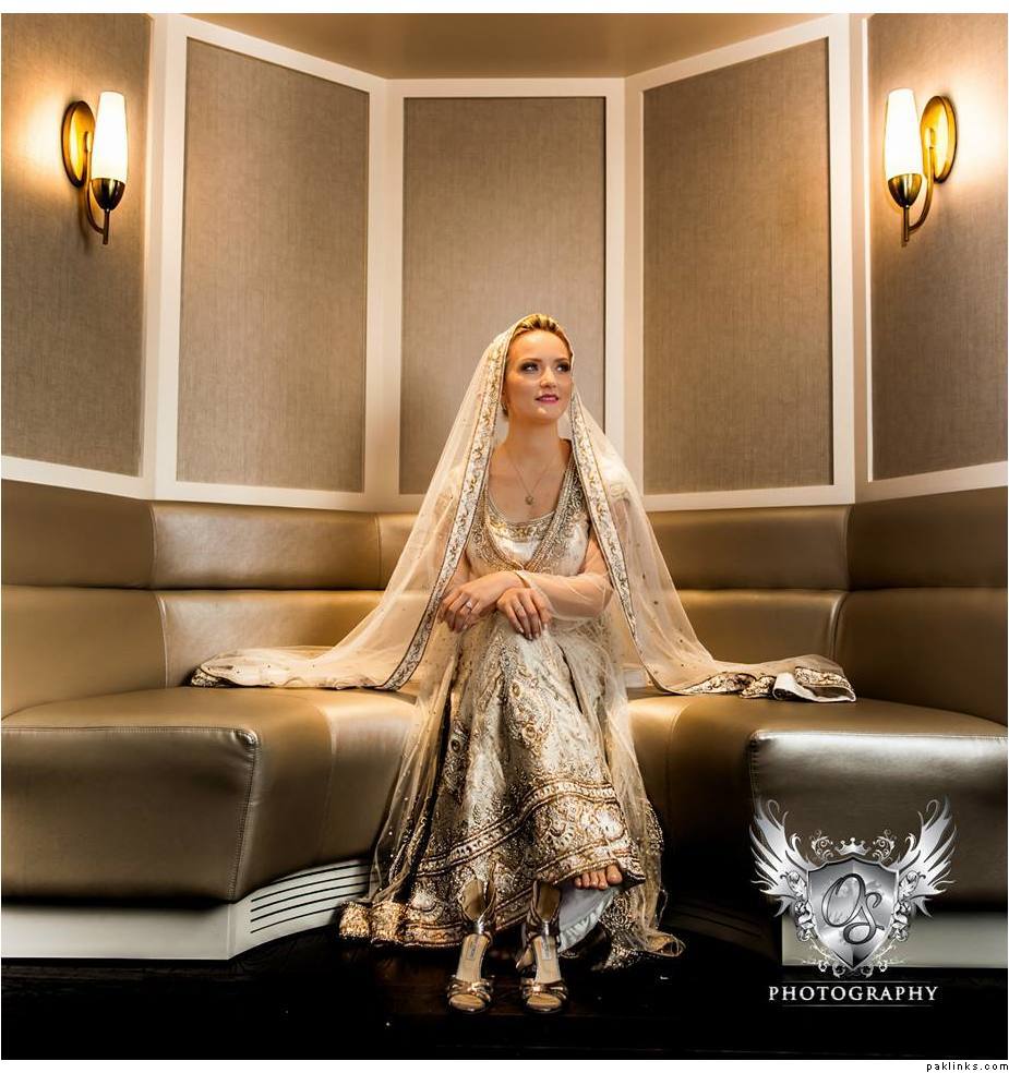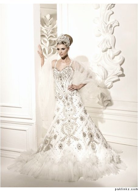 I googled “Indian fusion weddings” and came up with a few pics. I’m also including some pics of white brides with gown with crystal work. As mentioned already, find out if she plans on tanning for the walima and also her eye color. If possible, get a picture of her.