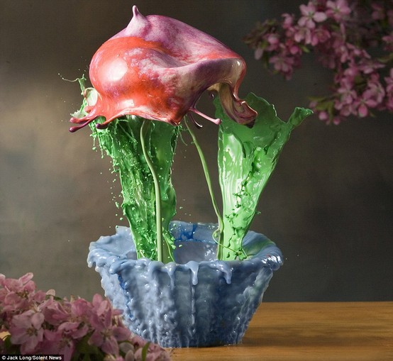 Blooming marvellous! This stunning floral picture was created by photographing a droplet of paint falling through the air after months of painstaking planning and testing.