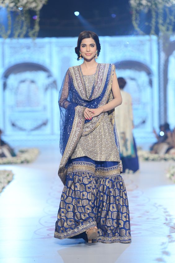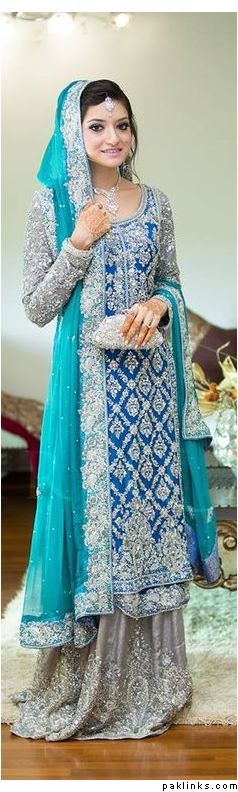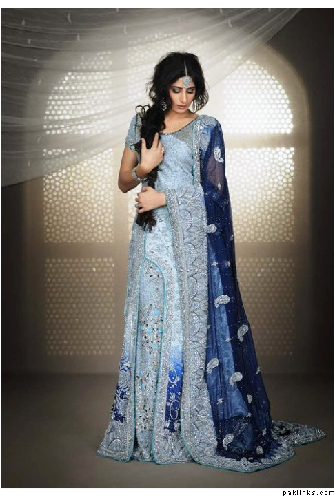 Hi guys, I plan to wear a blue jora (gharara, sharara or even a sari) to my wedding reception in December. If you could send my way pictures of any beautiful blue joras you find, I would be very grateful.