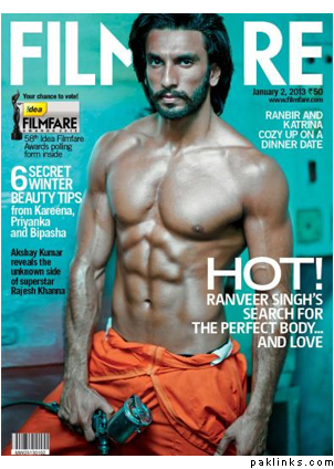 Staring off the new year with a bang, Bollywood dude, Ranveer Singh shows off his perfect body on the cover of Filmfare Jan 2013 issue. The actor has been training hard with Lloyds Stevens says that he is in the best shape ever.