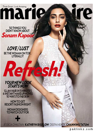 Bollywood’s fashion diva, Sonam Kapoor poses confident on the cover of Marie Claire January 2013 issue. The actress is dressed in a white Namrata Joshipura dress. The inside pages of the magazine will tell you 50 things you didn’t know about Sonam Kapoor.