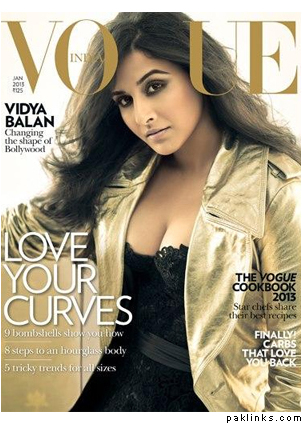 Newly wed Bollywood’s bold and beautiful Vidya Balan graces the cover of Vogue India Jan 2013 issue. Wearing a Rose Gold leather trench by Burberry with a gene embroidered corset by Agent Provocateur, it’s a refreshing change from her saree and hair tied appearances
