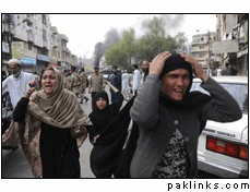 why people riot in karachi... geo reporting 100 shops on fire... a 5 story building collapse..