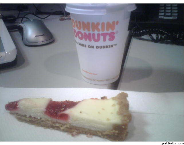 Wesey to breakfast ke leye coffee chalti hai par es dafa office main cheescake tha… dinner na khaya ho tou phir subha cheesecake acha lagta hai. ![]()
