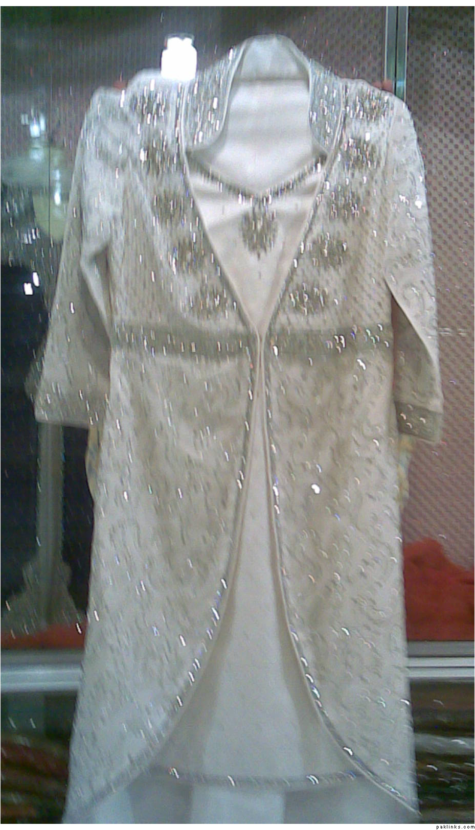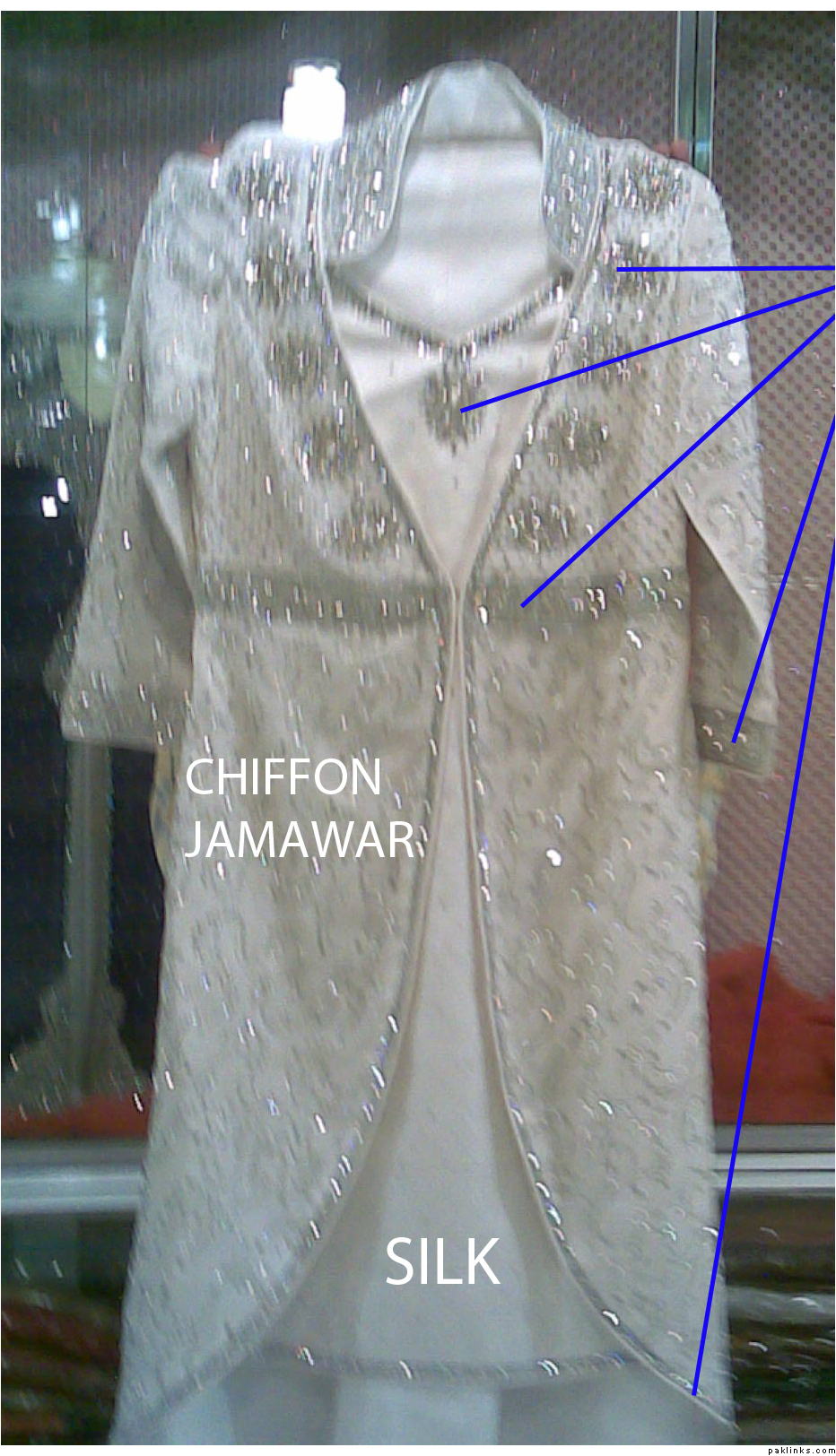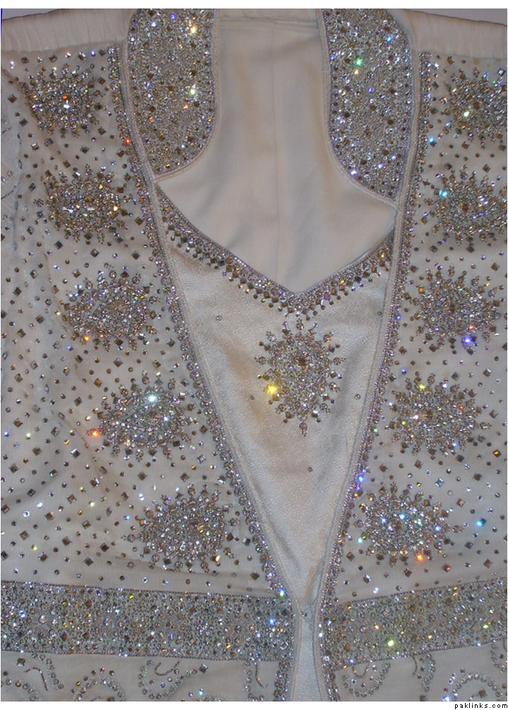 Work: Silver Dabka, Pearl Beads and White Stones.