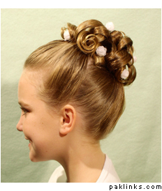 My cousin go her hair done up, and it was all back-combed (or whatever its called) at the front/ top of her head... apparently thats done so that when the dupatta is placed (which is usually heavy) on the head, it sits well and give a better look/ shape. Allah-ho-Alim.