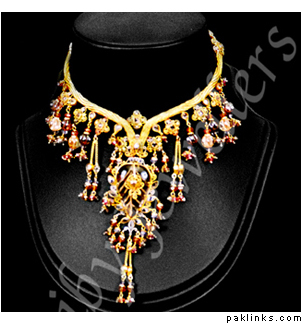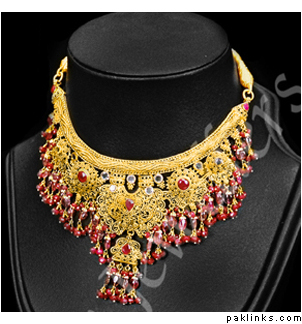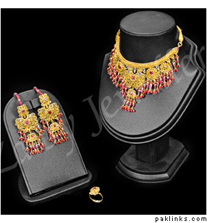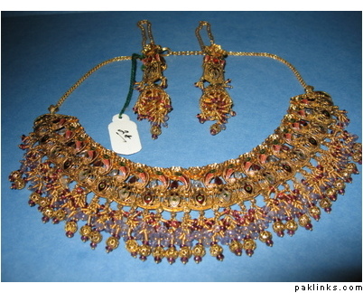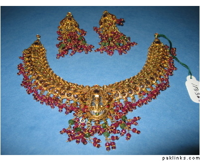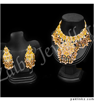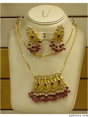 Gosh i love this one…so pretty! Is this gold that’s been laquered? and waht kind of stones are these? diamonds or cubic zirconia? How much do sets like these usually cost? and where can i get one in lahore??its so lovely :wub: