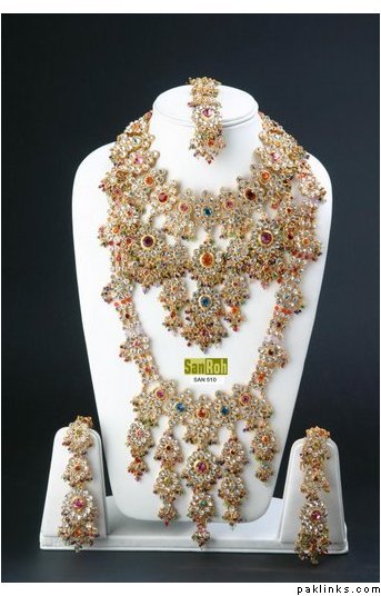 Now when i look back...I dont regret getting the real thing for my wedding though... i have amazing heavy sets, with lots and lots of real rubies, gems, and stones in them....the sets match with multiple outfits and give completely different looks with different colours, you can mix and match, sometimes u can just wear the long dangling earings or jhumkay with plain suit or something and it looks so classy (so u dont have to wait for a big event like a family wedding to make use of your set).....