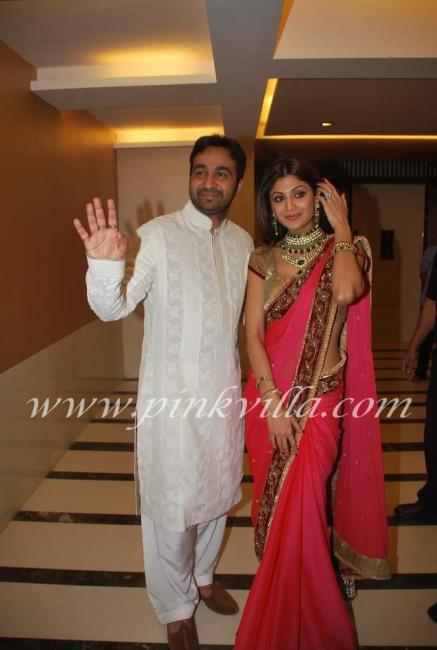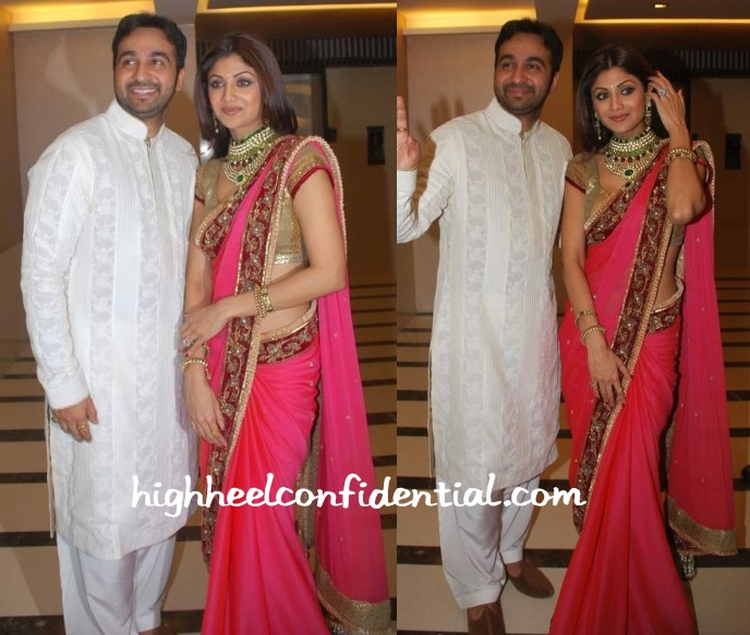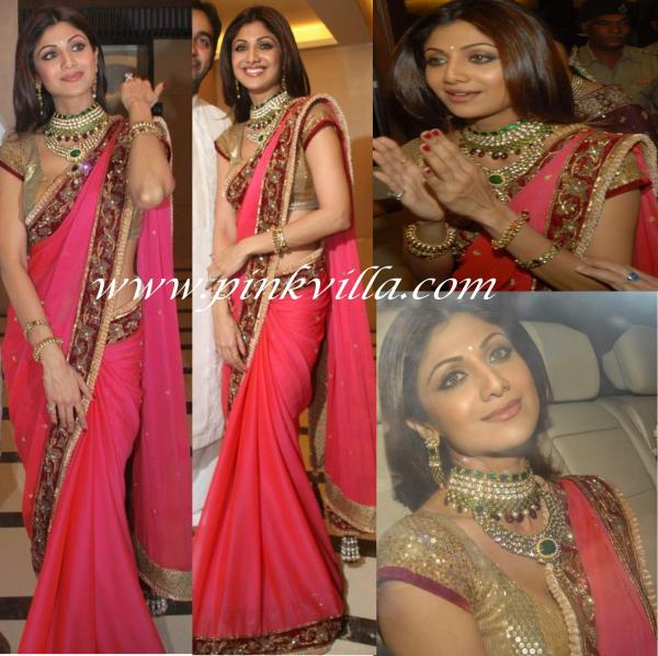Engagement pics of Shilpa Shetty. I love her jewelry nice Kundan and Polki set. Mods if you want to move this post to fashion and beauty please do so.