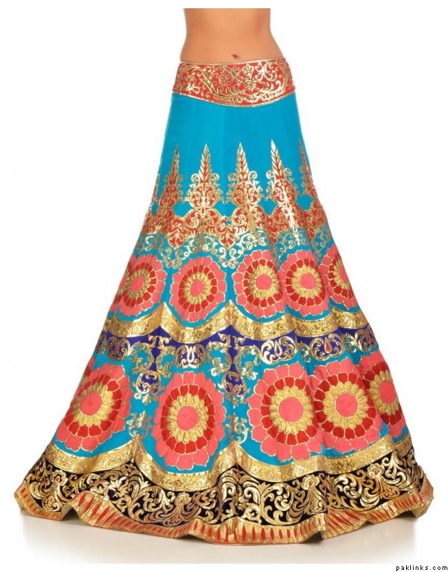 Pastels with Kamdani work with a bit of pop color to it are in these days. Gola Ganda color lehenga like the ones u have shown are a bit last season (hint: check Hina butts mehndi outfit as something with so many colors isn’t in at all)