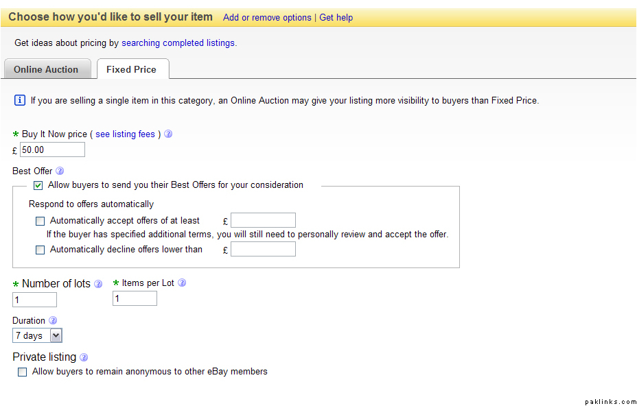 you don’t choose online auction.. choose fixed price instead.
