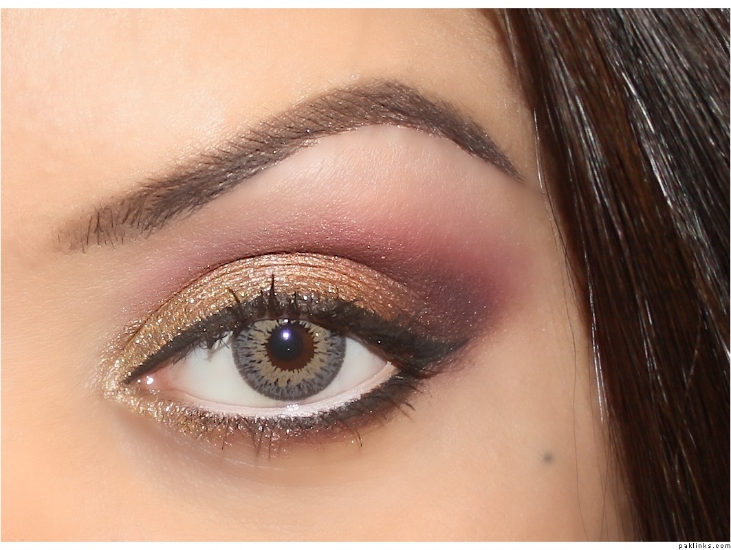 just watch the gallery in my website you will have some idea. i will prefer to use charcoal black in that case and some sheer glossy colours on lips of neutral family. www.zaibbeautylines.com
