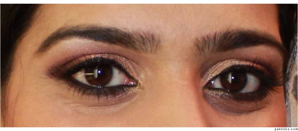 Afaaf, I don't think TOO much needs to be changed. I suggest the liner on the upper lash line be a little thicker, and wing it out a bit. You could also bring down some of the gold eyeshadow to the lower lash line or the tear duct atleast. I like soft nude lips, but I have to agree with Sara on this, when I looked at the pic the second time, it almost looks like there is no lipstick on it. Maybe you could make the lips a TAD bit pinker? or try adding some gloss. You know what I suggest. You're not going to have MAC makeup artists to do your makeup in Sahiwal, if you're sister is the one whose going to do it, get her to do a trial on you, and take pictures of your face and see how it looks from far...and see what looks good and what needs to be worked on