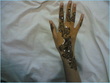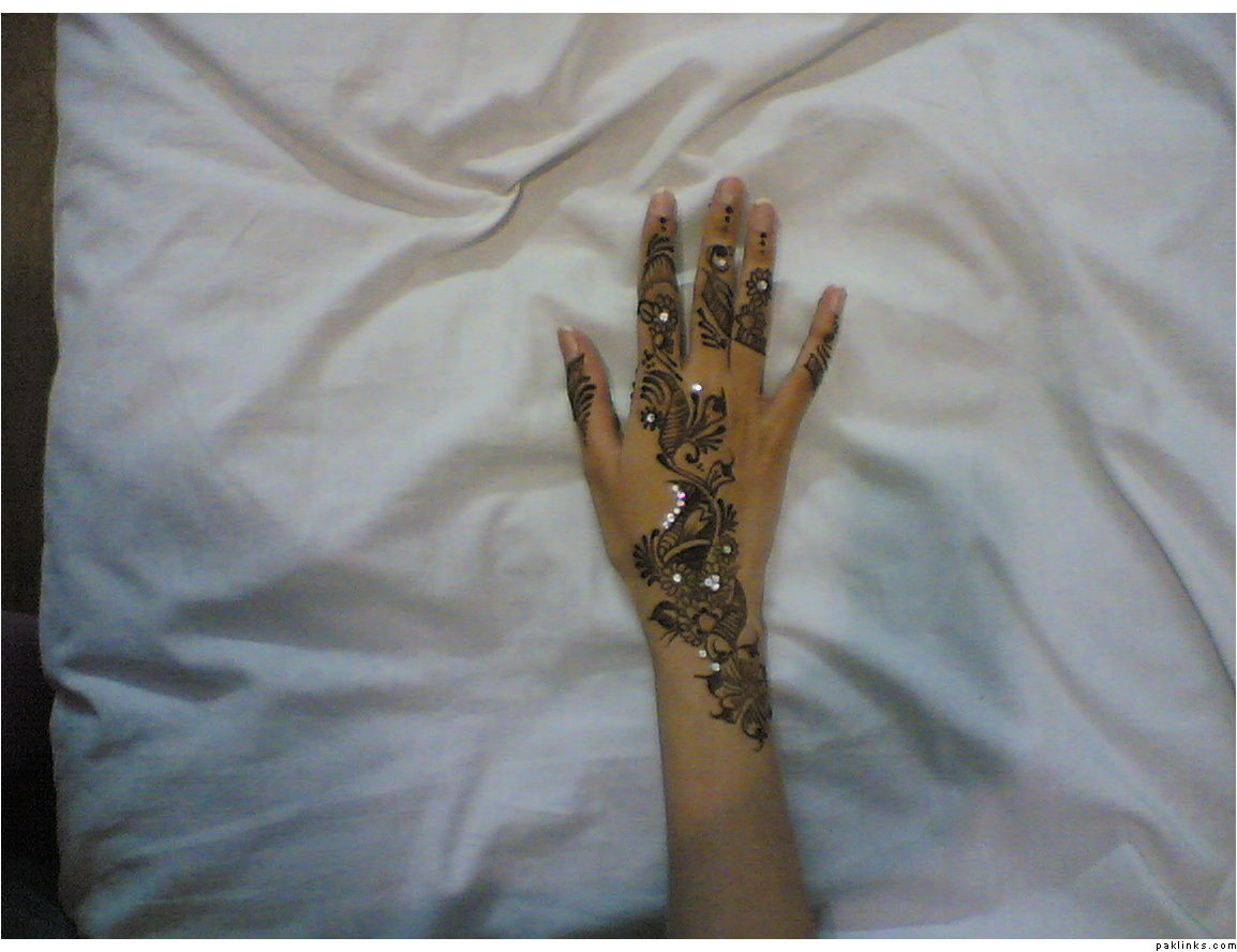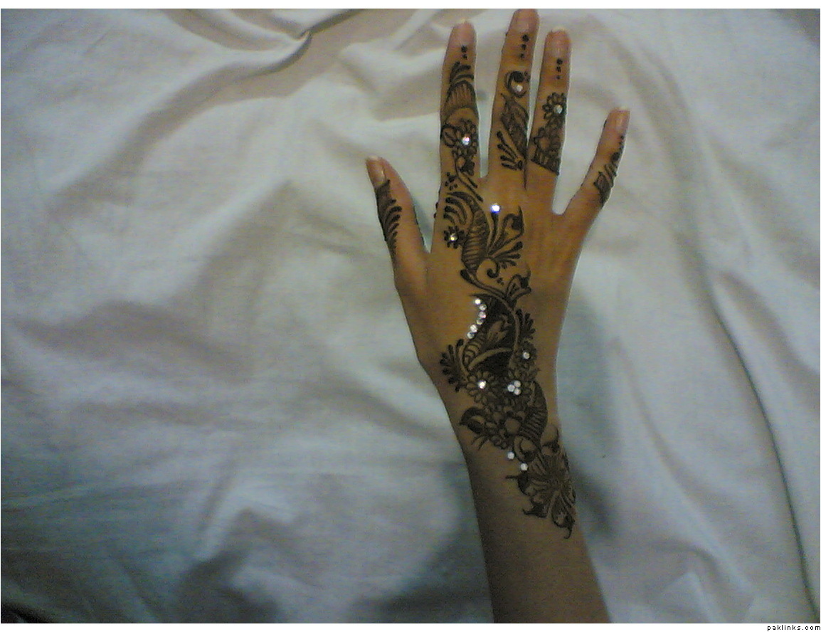 Nice designs.. how much u charge for 1 hand? I like those stones, tell me how u stick them on the skin? is it by the glue? but the glue won't leave traces on the skin? & is it possible to have simple mehndi on barat day & glitter mehndi with stones etc on walima day?, I want to have this type of mehndi on my wedding (barat=simple & traditional, walima=glitter), how u'll do it? or u will just add glitter to the same old design?
