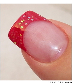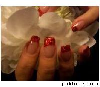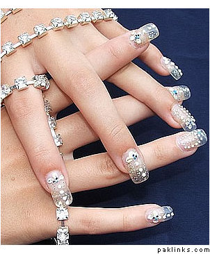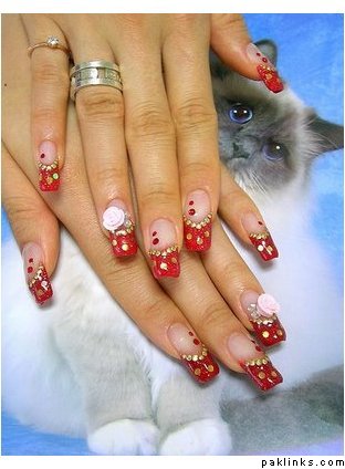 maybe it's a ny/nj thing or a guyanese /caribbean thing but the girls there love to do all these funky things on their nails, it's really unclassy and ghetto looking. i advise all girls either do a classic red nails, gold as someone mentioned, or a french tip.