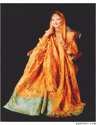 Sharmila Tagore wearing the farshi pyjama that her mother in law (the princess of Bhopal) wore at her wedding.