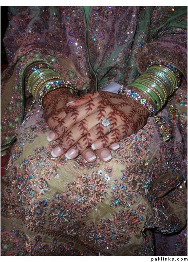 What's the point of wearing such a heavy mehndi ka jora (which is pretty btw) but then no jewelery or even makeup? Ajeeb lagta hai