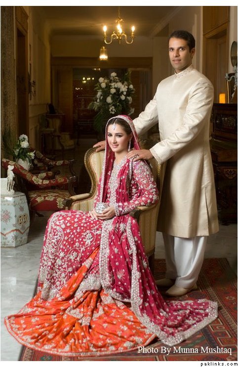 “My wedding outfit was created by one of the most revered and talented and ofcourse my most favourite designers in Pakistan, Bunto Kazmi. Since I was a child, Bunto aunty had always said she had envisioned the colours I would wear. I wore a traditional farshi and kameez in fuschia pink which was embellished with crystals and exquisite hand embroidery. My dupatta was over 6 yards and can also be worn as a sari! Absolutely loved it and couldn’t have imagined wearing anything more beautiful on my special day!