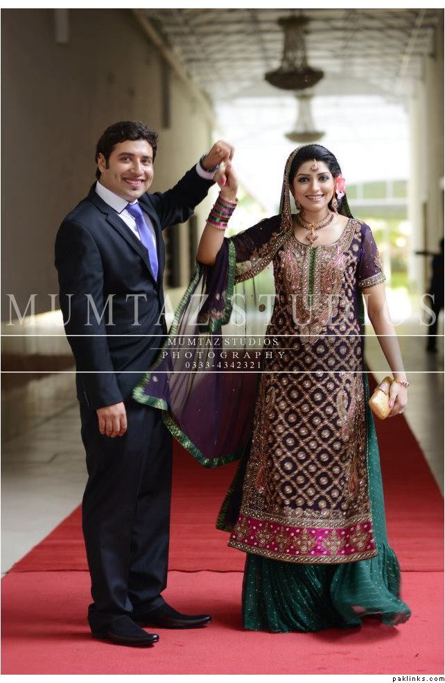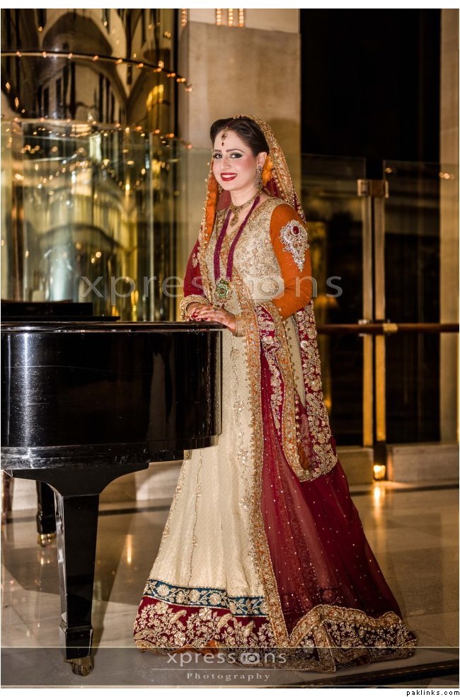 The designer is Rana Noman. By the looks of the picture and her, the bride is only half desi. she must have changed her outfit during the reception to the sari.