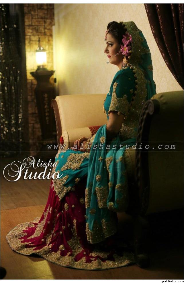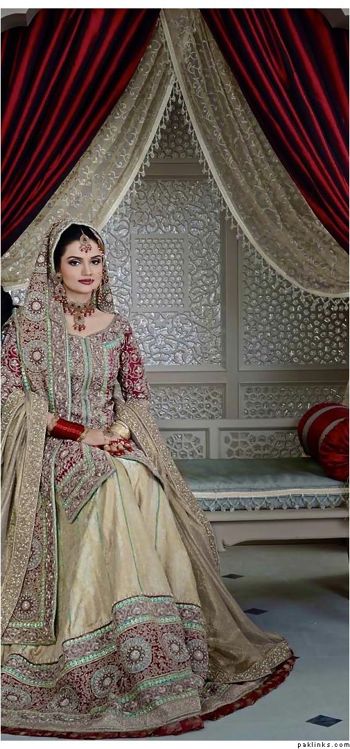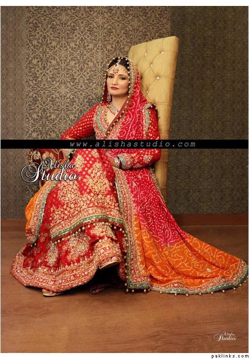 I think this is by Buttons and Bows. It’s on their page, Nadia Hussain( of B&B) wore it on her wedding day.Only duppatta color is changed here.