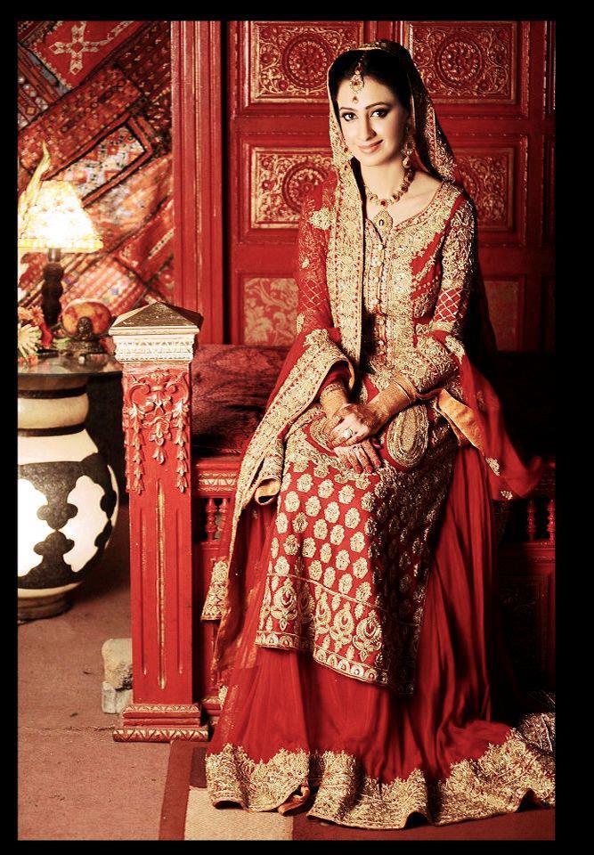 I think this is by Buttons and Bows. It's on their page, Nadia Hussain( of B&B) wore it on her wedding day.Only duppatta color is changed here.
