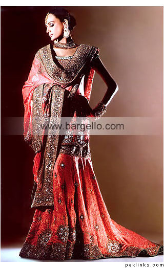 I m sure it's not a farshi...i think it looks more like a normal gharara with a train, though the "gote" or knee band in that pic is a bit higher than it usually is for ghararas.