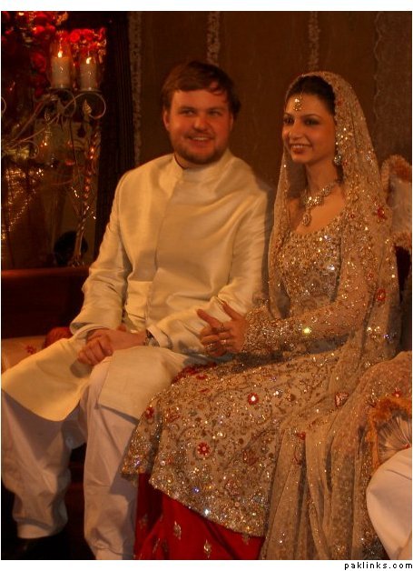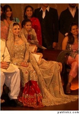 It definitely seems a Bunto outfit - the Farshi style with the very long shirt and swarovski kaam. It's very reminscent of Bunto' daughter-in-laws valima outfit - she had the same style sleeves made up of french net...