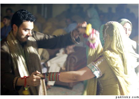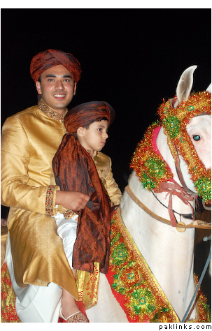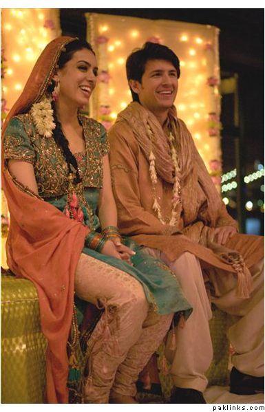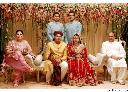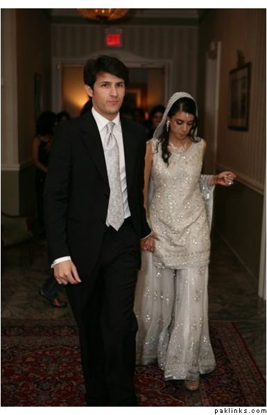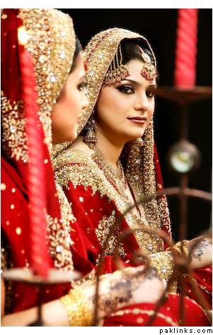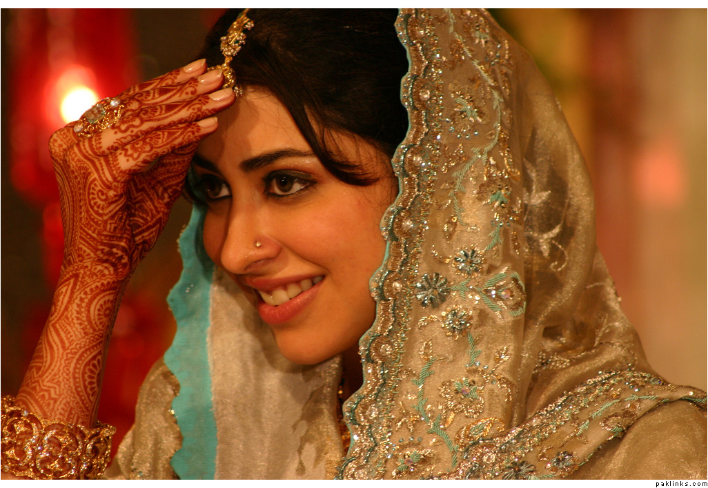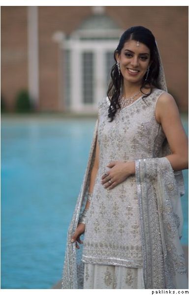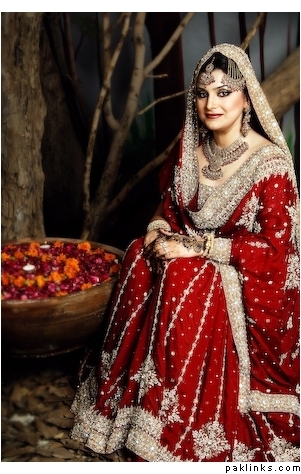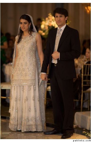I know for a fact that the wedding dress is by Nilofer, and the valima outfit is Karma (or are excellent knockoffs thereof…but judging from the rest of her set-up, my guess would be that the outfits are genuine).