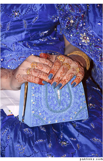 She is a pretty bride she has a very nice face butt, here eyes are scary and here nails and her handbag … to much match i don’t know why people’s in Pakistan match so much damh it looks so scary !