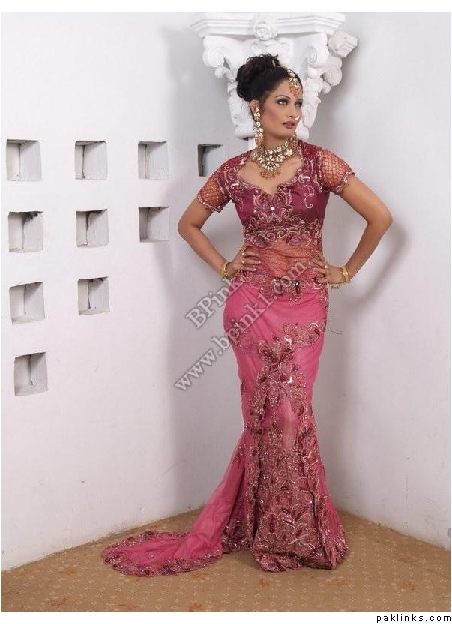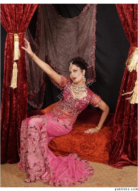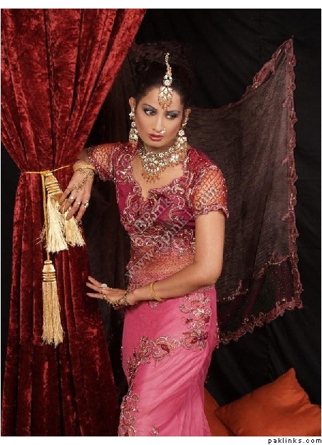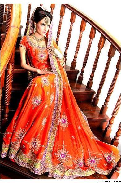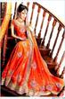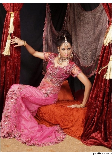 Look how anorexic the model is. Her arm is just bone and her head looks huge. Lengha is lovely. Didn't think size 0 was in fashion in pak