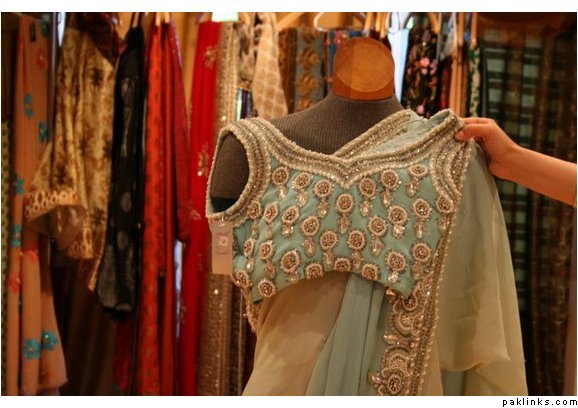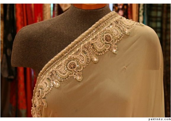 I’ve been to her boutique in New Delhi a few times…frankly, I’ve never been particularly impressed with her clothes. She uses a lot of synthetic fabrics…and her kaam, like most Indian kaam, is distinctly inferior to good quality Pakistani work.