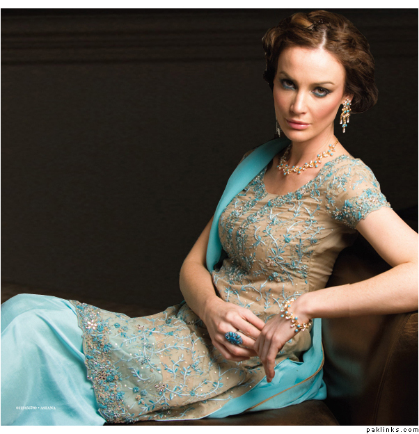 The winter collection is about to come from all the designers HSY ,Karma etc.So I m not sure about the dress colours that will be in for winters just wait for 2 weeks and then I will update you...bt the makeup is dark for lips and smokey for eyes. Hers is not that dark its the lighting that has effected the face i think.