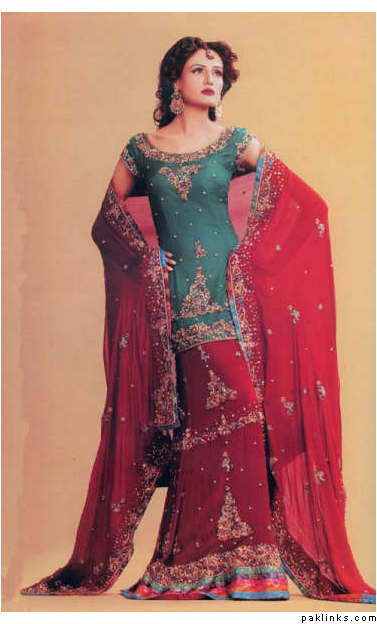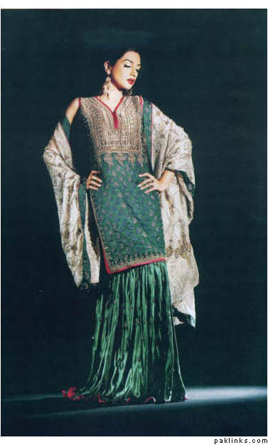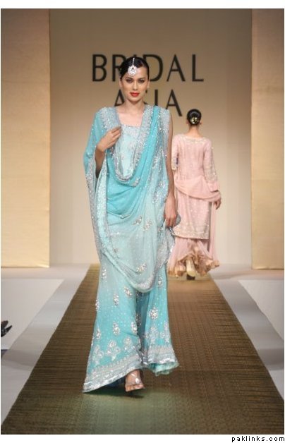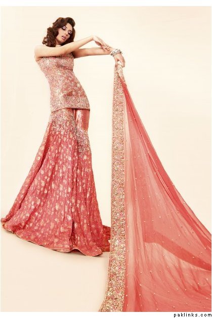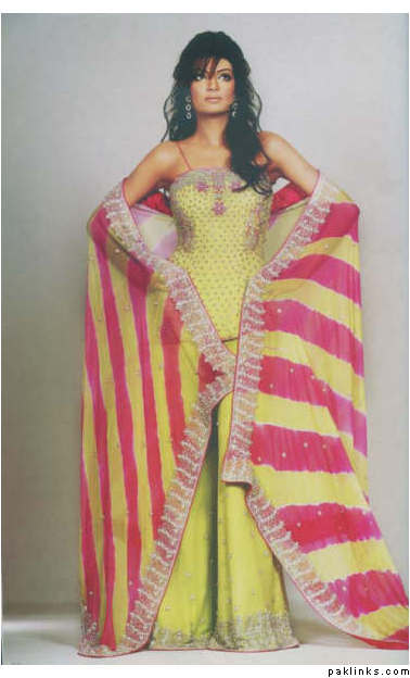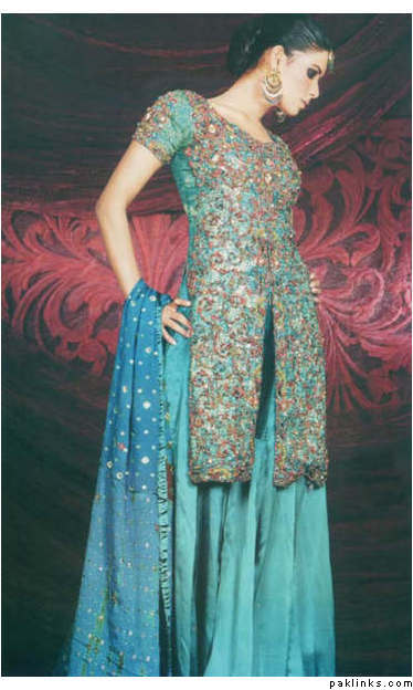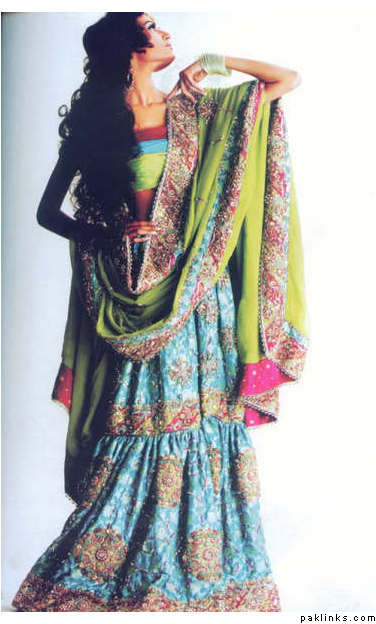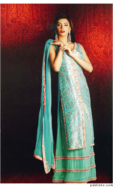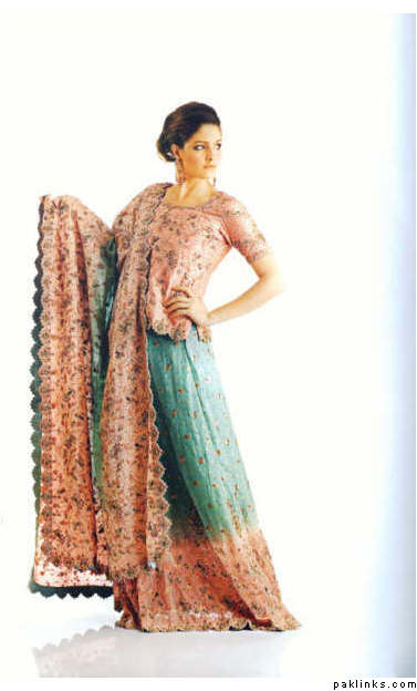 I think the last 4 photos are of Sobia Nazir's collecion. I'm really loving her stuff. Her latest collection is to die for...very good use of colours, a lot of two-tone outfits. Also, seems like net is coming back b/c she has used it and Bunto Kazmi also suggested it for Ziggy's babhi's jora.