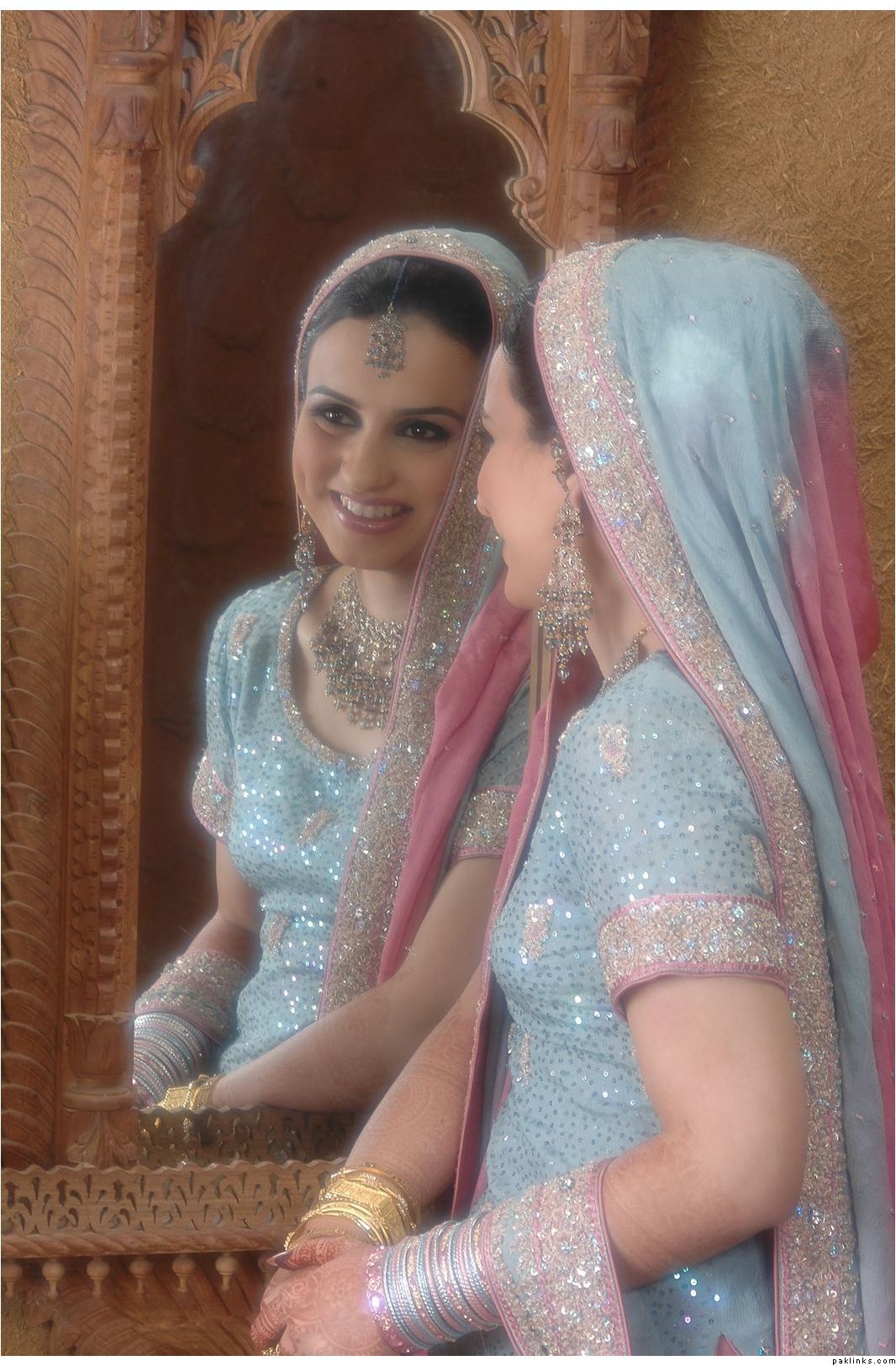 ^ oh i dunno - it was part of a set of photos that seemed to be collected by a third party so there weren't any pics from mehendi or other events...maybe it's not even baraat or valima dress but a nikah function. Wouldn't this be a nice jora for nikah?