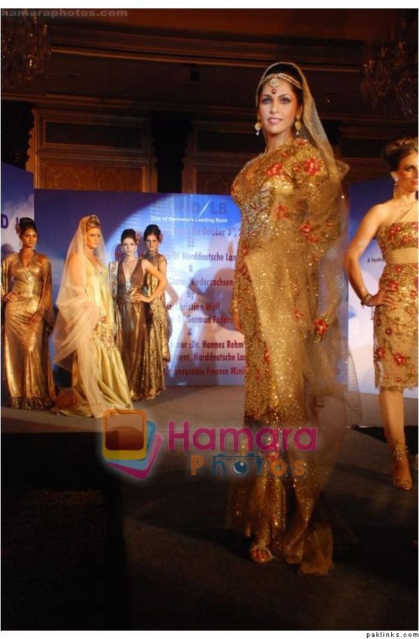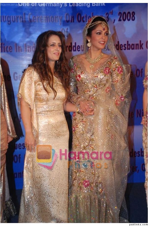 twinklewinkle, that is Isha Koppikar at Norddeutsche Lands Bank in a Fashion Show by Pria Kataria Puri in Taj Crystal Room. It is not by Faiza Samee but I thought the same when I looked at it for the first time. Infact most of her collection has similar kaam that gives out Fazia Sameeish vibes. Here are more pics: