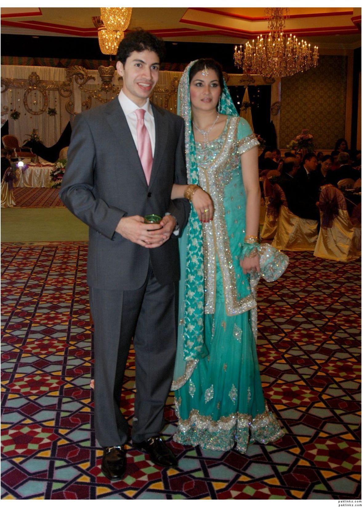 how many weddings has this couple had. there were pictures of them earlier in red clothes as well a green probable hsy gharara. and now these. oh well she looks nice.