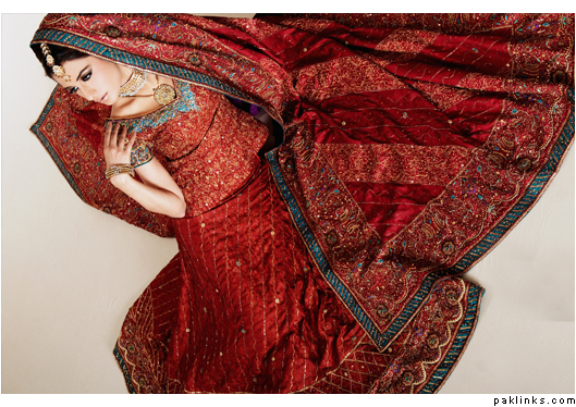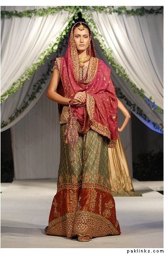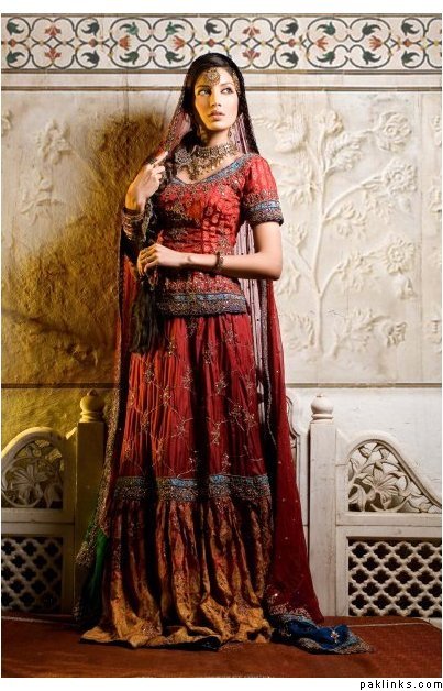 lovely color combo, nice jewelry & pretty bride. what kind of fabric is her shirt & lehnga made of? is it a fancy fabric used as a lining under chiffon? i can’t tell…![]()