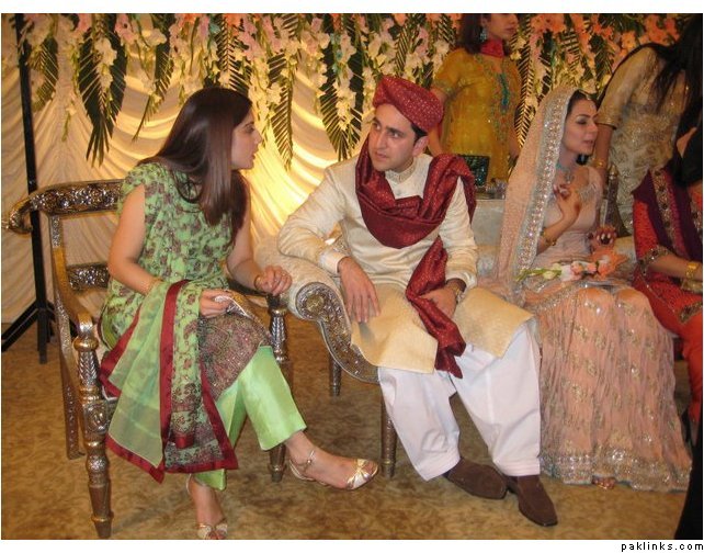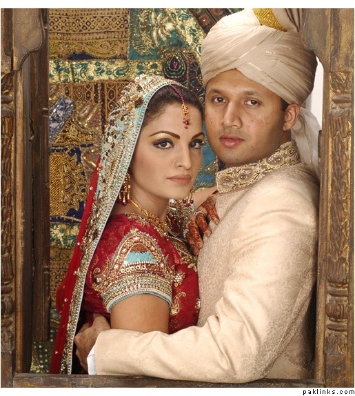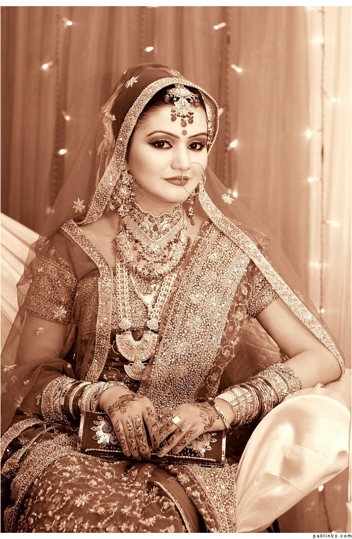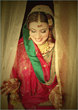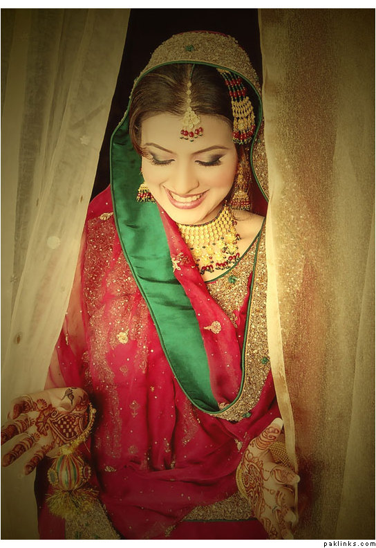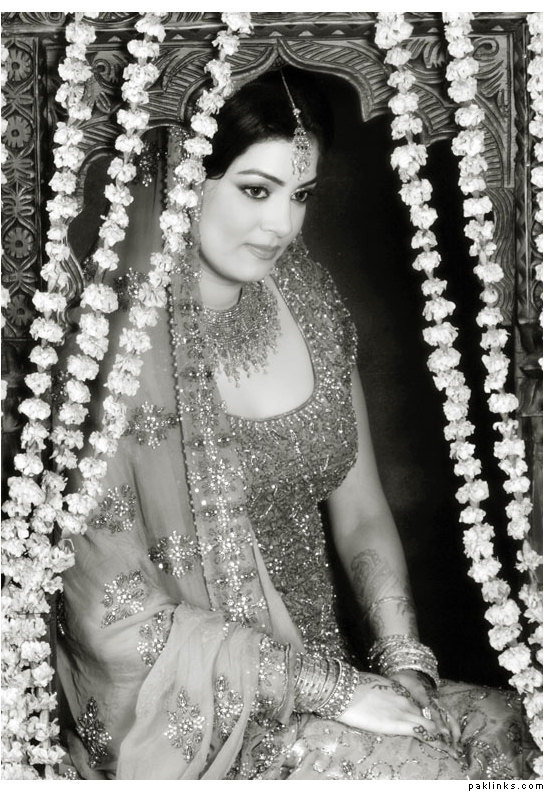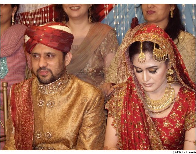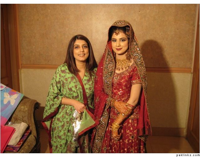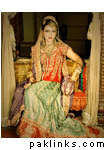 i found her (Kiran Bokhari) outfit to be really fabulous and unique. the chaddar drape was intentionally made that way to go with the very traditional gota and the heirloom jewelry. it was custom-made for her the way she wanted, and i think it was really well done. it was exclusive to her too-- for about 6 months after the wedding.