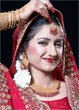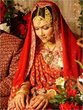 the green is because she's wearing an emerald and polki set; red i'm assuming because its "bridal"?
