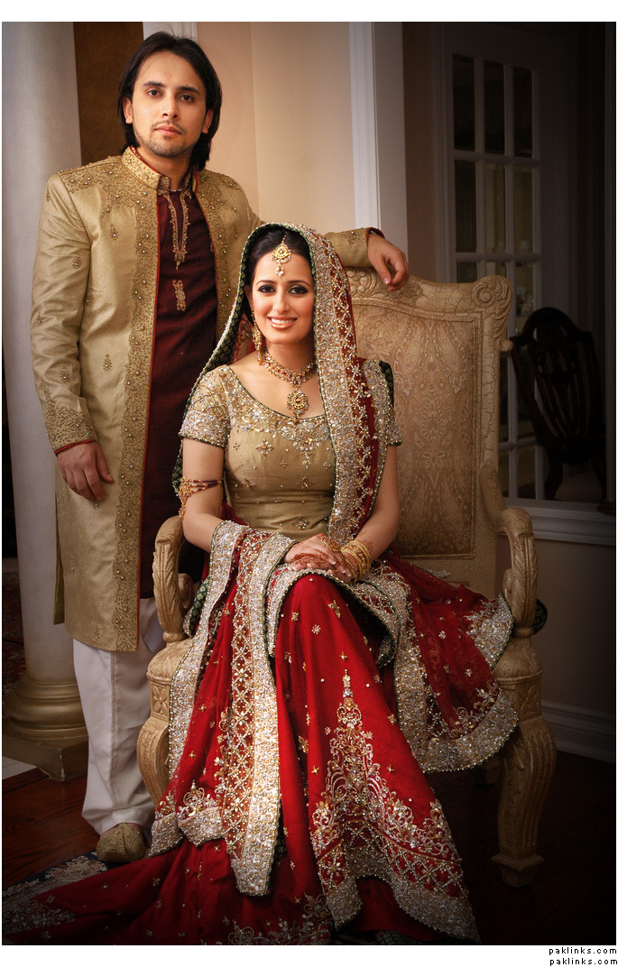 Its the designer's (fahad hussayn) own brother and bhabhi - the dress is an inspired version of sabyasachi, beautiful nonetheless!