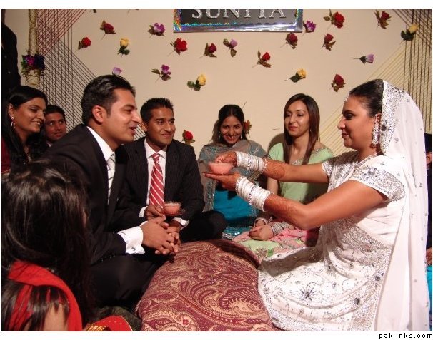 woah! a black valima! and black is everybody's dresscode in this one! wah! that's something i've NEVER seen ... my mother would personally kick me if i said i want to wear black ... not that it would suit me anyways ... lol ... anyways ... lol but personally ... i'm having a hard time looking at a "black" bride ... very tim burton i'd say :| shez looking really nice on her barat though!