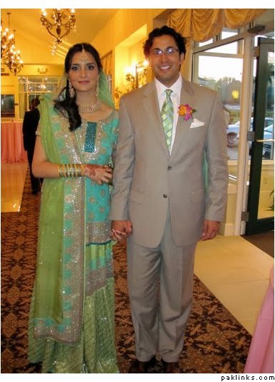 The mehndi outfit is not nice. The wedding outfit is at least tasteful and elegant, but it's not quite Mrs. Kazmi's typical style.