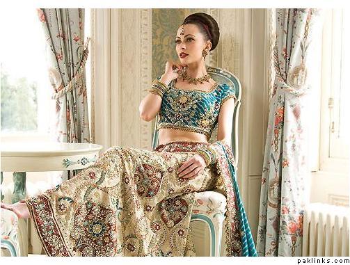 OR the photographer photoshopped her red bridal outfit to look ferozi...since her jewelry, hair, makeup and kaam essentially look the same.